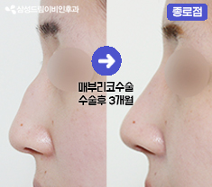 삼성드림이비인후과 인천송도점 <낮은코성형> 전후사진 [수술 후 3개월 경과]코의 겉모습 : 비개방으로...